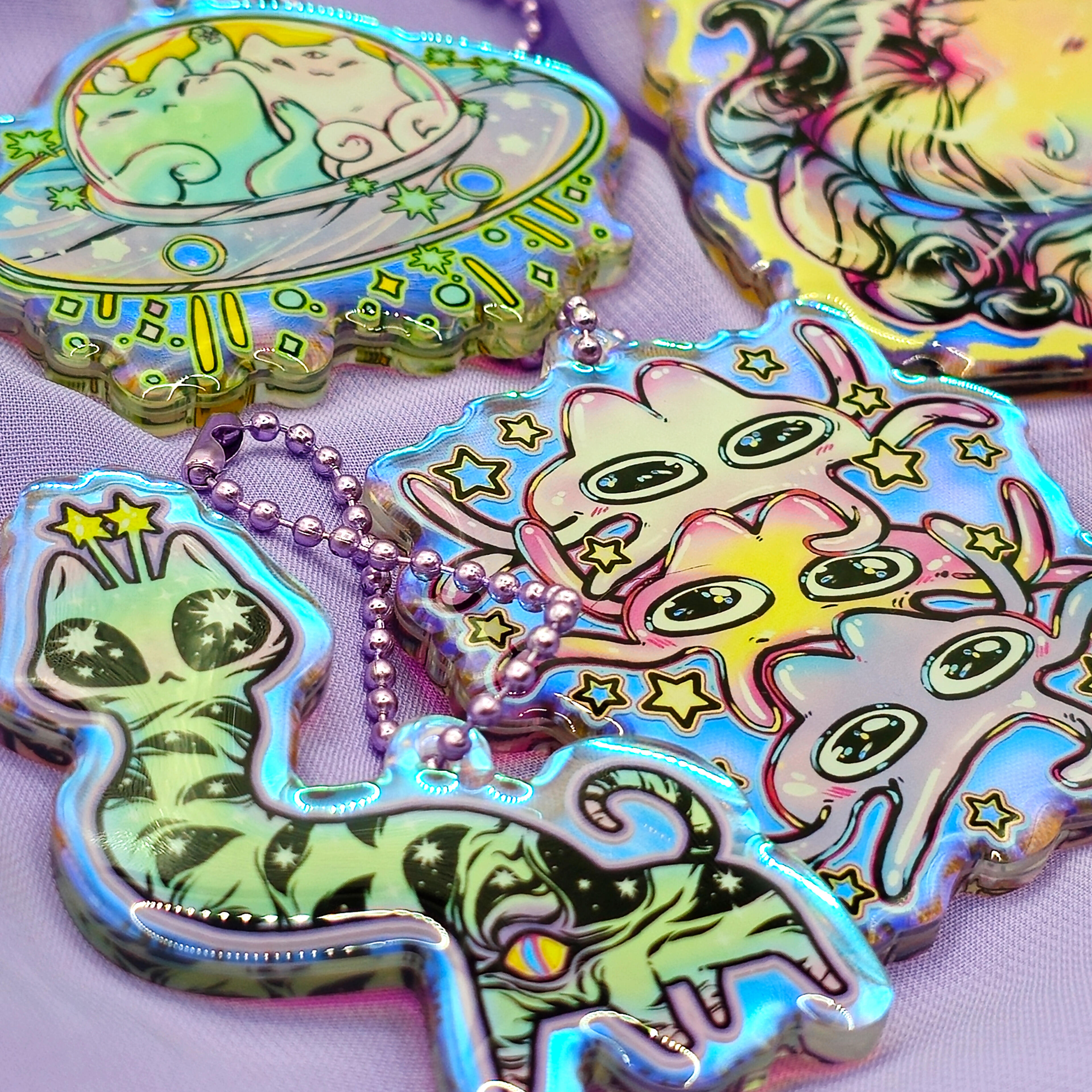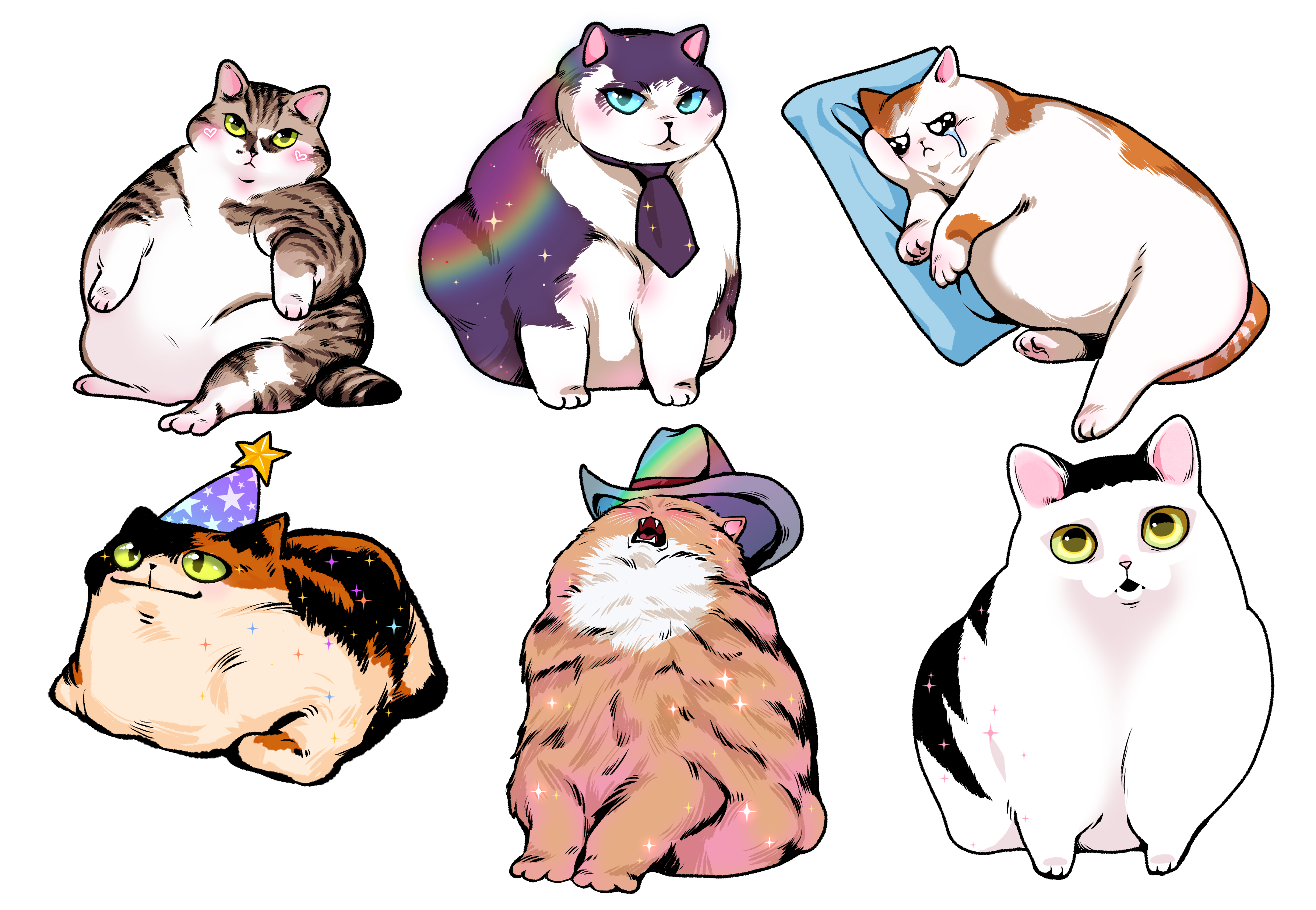 With Rambutan Illustration I focus on manga-inspired art, including yuri and adult-themed projects. Epic Cat Studio is home to my lighthearted, family-friendly work featuring funny, chubby cats.Here you’ll find a selection of my portfolio, from prints and charms to larger narrative pieces.