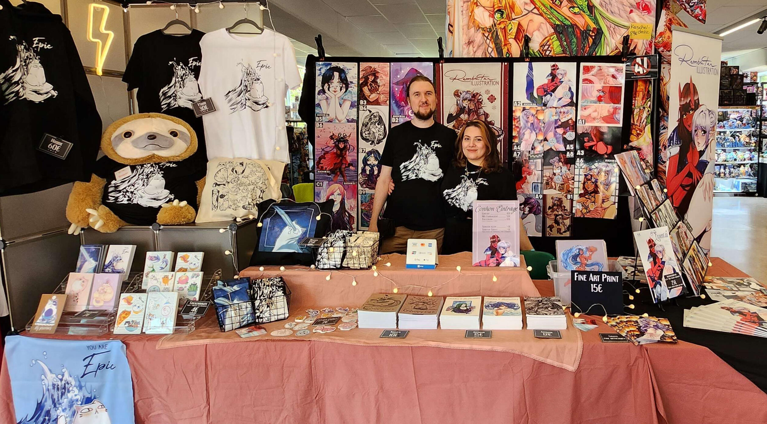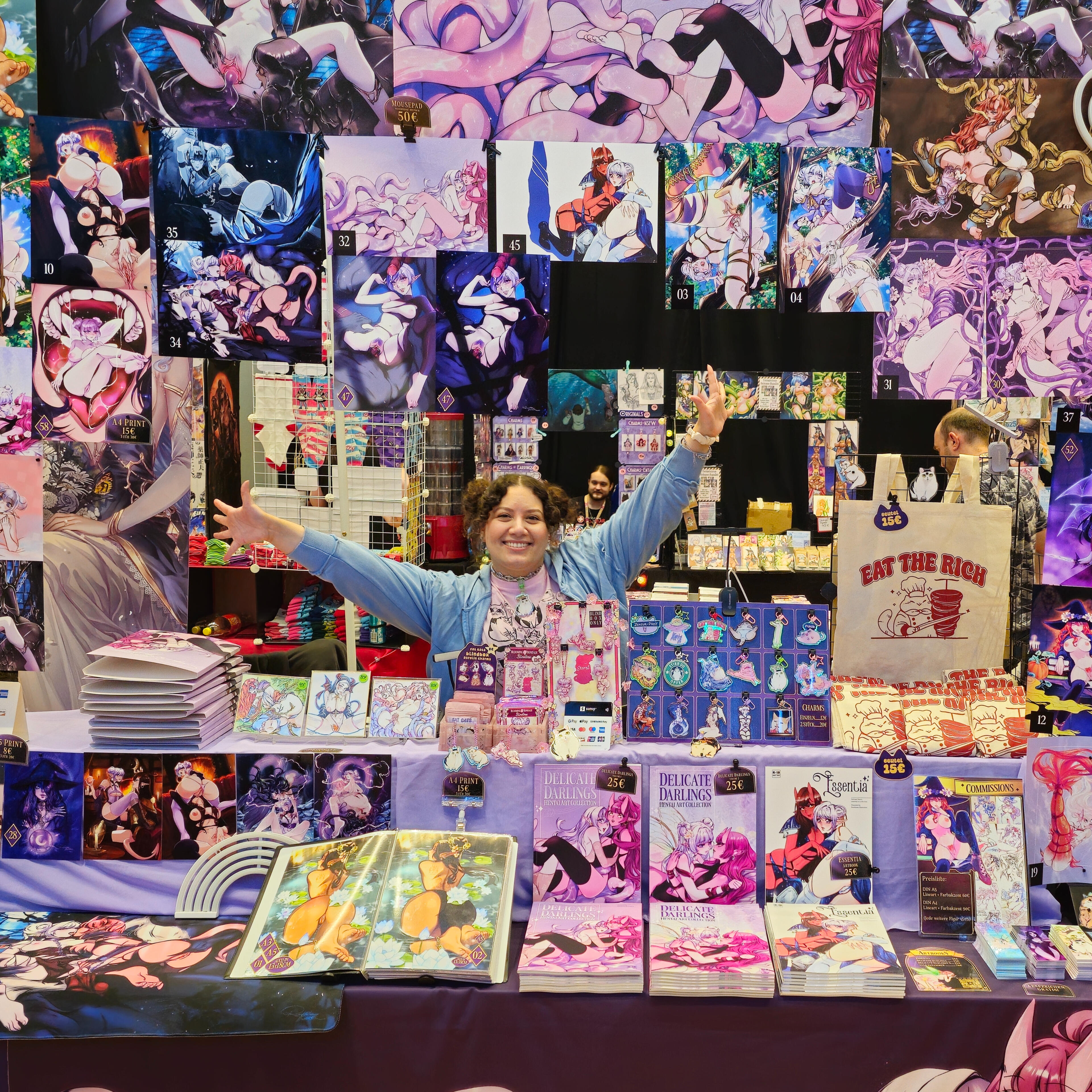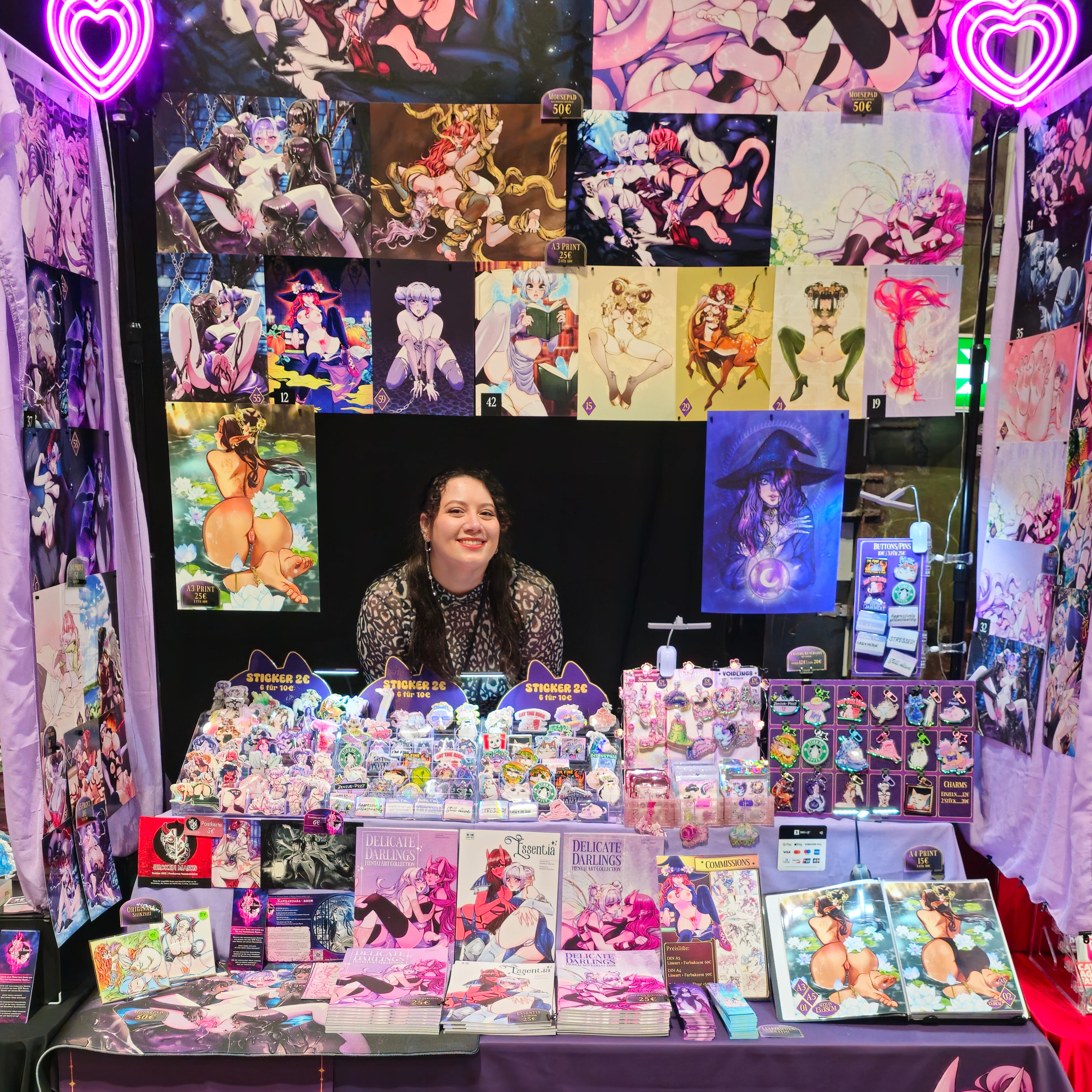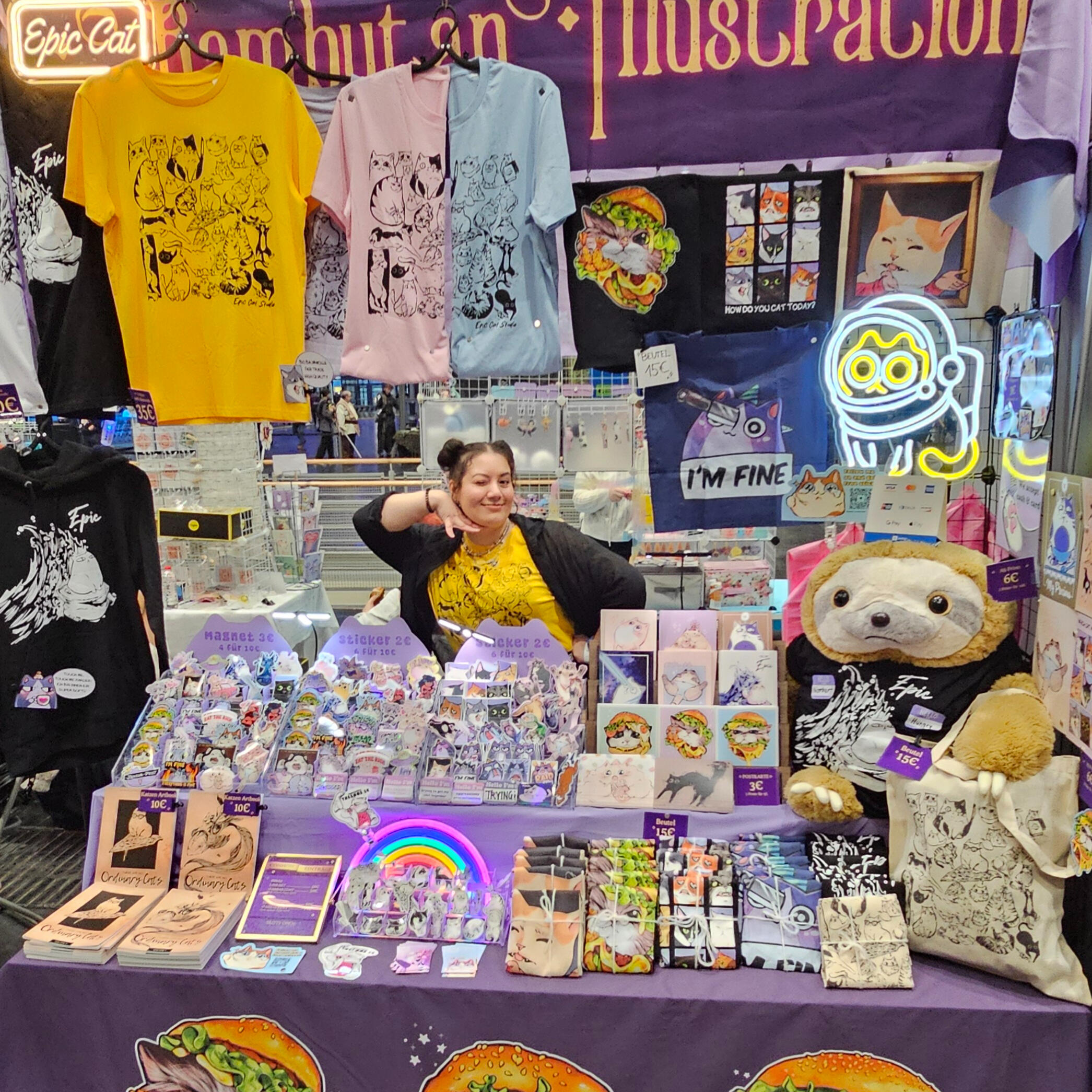 With Epic Cat Studio I present a full range of family‑friendly artwork: sweet, humorous, and accessible to all ages. While my main focus often lies in 18+ creations for dedicated convention areas, I am equally experienced in building entire booths with only SFW content. This versatility allows me to adapt to different events and audiences, ensuring that my work can be enjoyed in both playful and mature contexts.